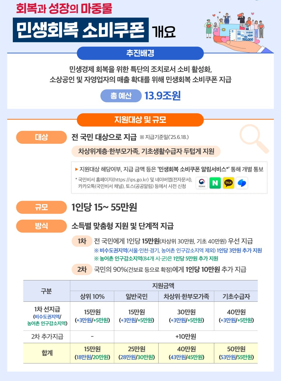 소비쿠폰은 전국민 대상이며, 소득 수준에 따라 차등 지급됩니다.