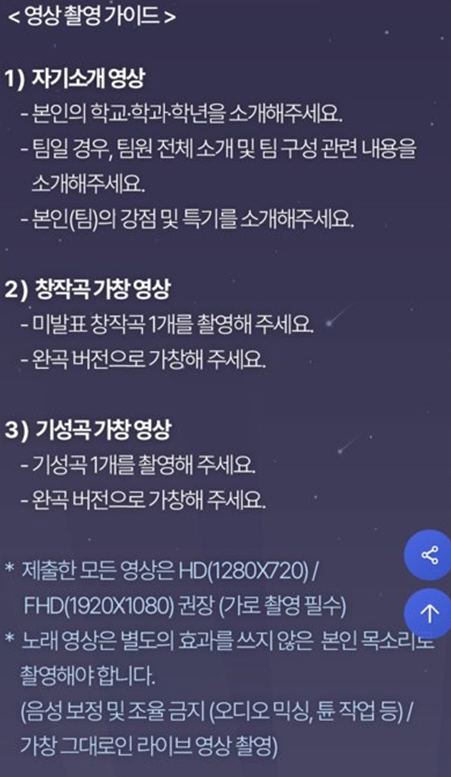 -최종 예선·녹화 단계에서는 라이브 오디오·비디오 제출 요구 가능
